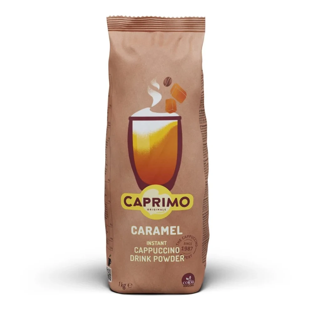 Caprimo Cafe Caramel to produkt będący połączeniem kawy i czekolady o wyjątkowym słodkim smaku karmelu. Receptura pozwala, aby każdy mógł delektować się wyjątkowym smakiem karmelowej kawy. Wysokiej klasy składniki, połączone z tradycyjnym czekoladowym smakiem dają w rezultacie najlepszą karmelową kawę na rynku. Wspaniale nadaj się do samodzielnego przyrządzania w warunkach domowych. Receptura pozwala zalać wodą odpowiednią dawkę produktu, aby w mgnieniu oka otrzymać gotowe, soczyste cappuccino, o głębokim smaku. Produkt jest prawdziwym hitem sprzedażowym w automatach vendingowych. Jeśli poszukujesz innych wyjątkowych smaków cappuccino koniecznie sprawdź, co możemy Ci zaoferować.
