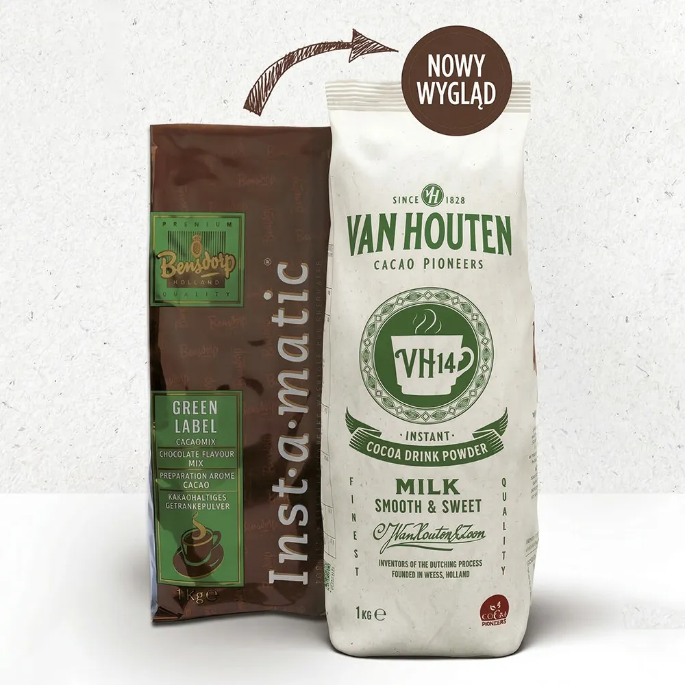 Czekolada Van Houten VH14 do automatów to profesjonalna mieszanka instant o smaku mlecznym. Produkt ten jest oficjalnym następcą legendarnej linii Bensdorp Instamatic Green Label. W rezultacie otrzymujesz sprawdzony profil smakowy w nowoczesnym wydaniu. Dlatego wprowadzenie VH14 do automatów pozwala na zachowanie ciągłości sprzedaży. Nie musisz przy tym zmieniać dotychczasowych ustawień dozowników w swoich maszynach.